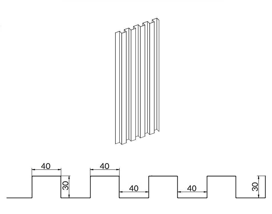 Blechlamelle 40×30×40 mm, Dach: Trapezblech T12